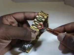 Разберите металлический ремешок часов, используя отвертку с круглой головкой (SIM). Затем вытащите винт.