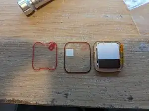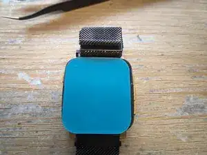 Это кажется чем-то, с чем большинство людей сталкивается - чем прикрепить экран обратно. Лента Tesa — хороший вариант, в противном случае в моей первой замене я на самом деле использовал запасный набор клейкого вещества для ЖК-дисплея, который у меня был под рукой (см. следующий шаг). Моя лучшая идея заключалась в использовании некоторой ленты Apple Watch Series 5 (44mm) и ее подгонке по размеру.