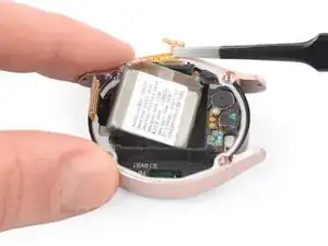 Если батарея вздулась, примите соответствующие меры предосторожности. Для вашей безопасности разрядите батарею ниже 25% перед разборкой Galaxy Watch4. Это снижает риск опасного теплового события, если батарея будет случайно повреждена во время ремонта.