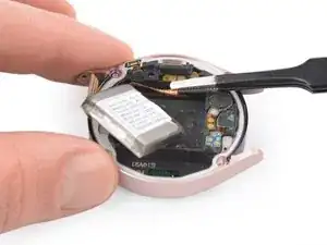 Используйте тупые пинцеты, чтобы приподнять разъём батареи, который закреплён слабым клеем.