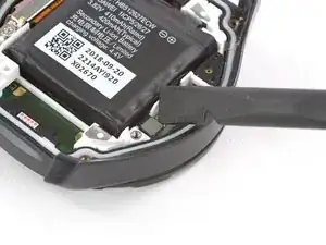 Гибкий кабель датчика сердечного ритма прикреплён к металлическому щитку, который закрывает разъём батареи. Чтобы избежать повреждения гибкого кабеля, захватывайте металлический щиток только за нижнюю часть, где был винт Phillips.