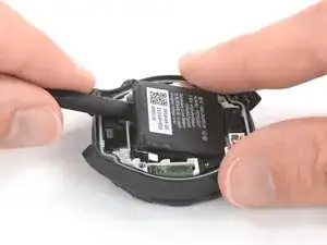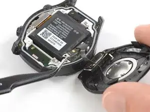 Осторожно отогните сборку задней крышки в противоположную сторону от двух коронок часов.