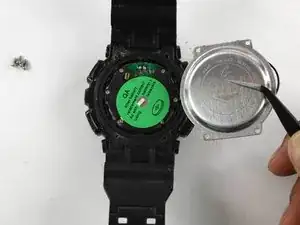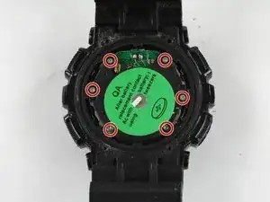 Открутите четыре винта крестовой отвёрткой №00 с задней крышки часов.