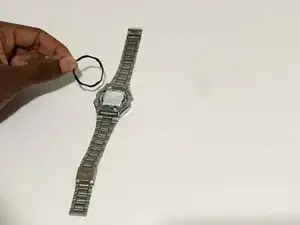 Пальцами или пинцетом при наличии снимите резиновую прокладку вокруг основания корпуса часов.