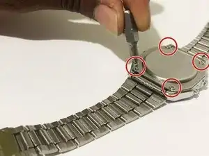 После установки задней крышки часов используйте отвертку Phillips #00, чтобы закрутить четыре винта на место.