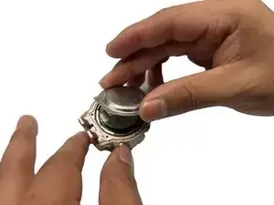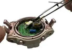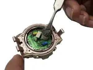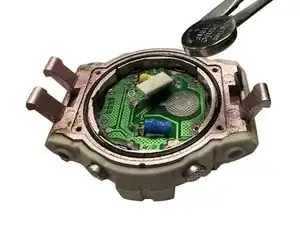 Вставьте новую батарейку на круговой компонент с помощью пинцета.