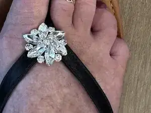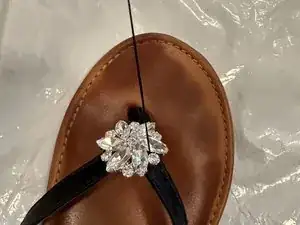 У отличных сандалий потерялся блестящий украшение. Вторая сандалия всё ещё блестит и выглядит очень мило — спасите сандалии! Вы можете найти замену украшения или брошки в магазине для хобби или рукоделия, а, используя базовые навыки шитья, прикрепить замену. Будьте осторожны, если вы новичок — иглы острые!