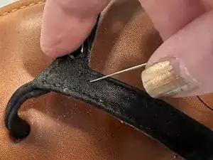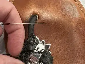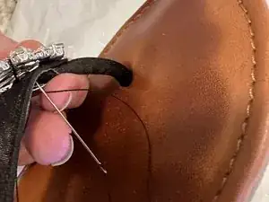 Если протолкнуть иглу через ремешок сандалии сложно, попробуйте повернуть сандалию под углом и использовать плоскую поверхность как точку упора.