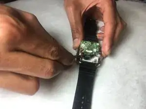 Возьмите материнскую плату пинцетом и извлеките из корпуса часов.