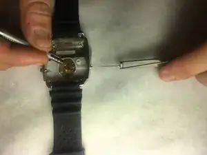 Используйте пинцет или инструмент с иглой, чтобы извлечь из часов.