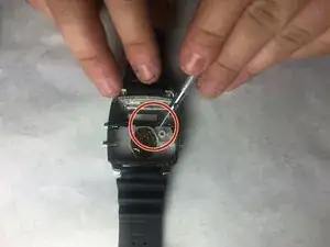 Осторожно снимите заднюю крышку с часов. Вы увидите литиевую батарею и резиновое уплотнение, прикреплённые к задней крышке.