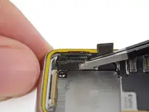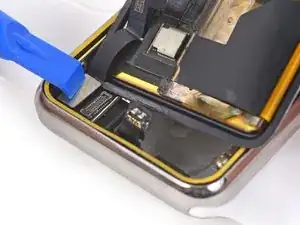 Используйте пластиковый инструмент для вскрытия, чтобы соскрести старый клей по краю экрана. По возможности снимайте большие куски пинцетом.
