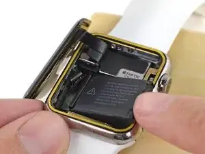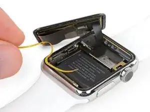 К сожалению, при вскрытии Apple Watch можно повредить датчик Force Touch, который также выполняет функцию уплотнительной прокладки. Датчик состоит из двух слоёв, склеенных между собой. Эти слои могут разъединиться при вскрытии часов, что нарушит герметичность после сборки. В этом случае потребуется восстановить или заменить датчик перед повторной сборкой.