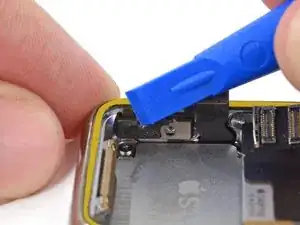 Используйте пластиковый инструмент для вскрытия, чтобы отогнуть крышку в сторону дисплея и приподнять её от динамика.
