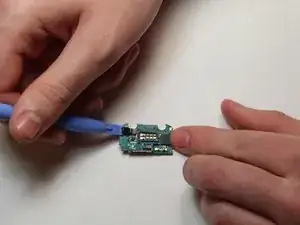 Используя пластиковый инструмент для открывания, аккуратно отожмите кабель датчика сердечного ритма от материнской платы.