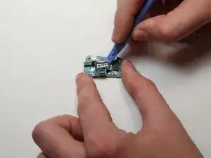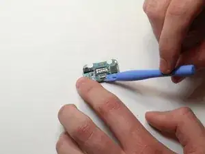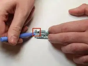 Используя пластиковый инструмент для открывания, аккуратно отожмите разъём от материнской платы.
