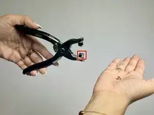 Установите люверс на внутреннюю плоскую сторону клещей для люверсов.