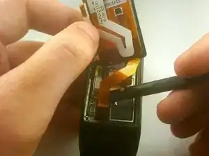 Используйте плоский конец лопатки, чтобы отключить разъёмы шлейфа дисплея от материнской платы.