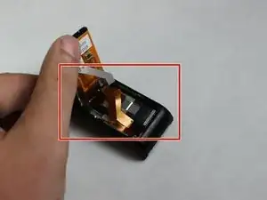 Дисплей всё ещё соединён шлейфами, поэтому не отделяйте его полностью.