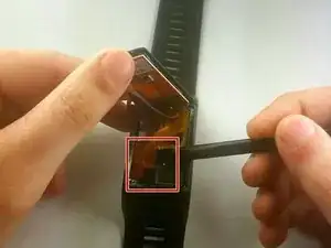 Вставьте лопатку между дисплеем и корпусом часов.