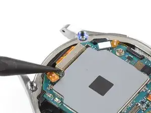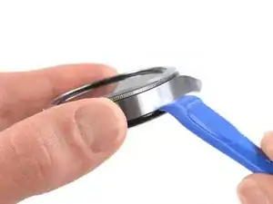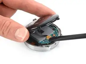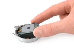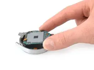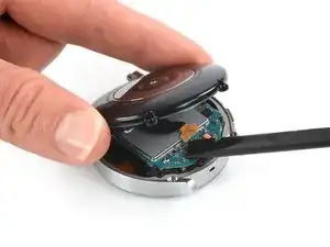 Используйте палец, чтобы аккуратно протолкнуть дисплей вниз через металлический корпус часов, отделяя его от рамки.