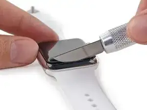 Из-за узкого зазора между экраном и корпусом часов для их разделения требуется острое лезвие. Внимательно прочитайте следующие предупреждения перед продолжением.