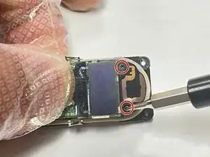 Удалите два винта размером 2,9 мм Torx, удерживающих плату в месте.