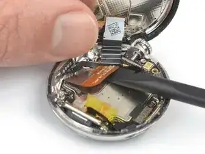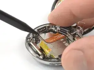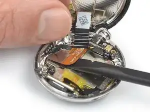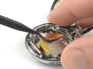 Аккумулятор зафиксирован лёгким клеем. Если вы испытываете трудности с поддеванием аккумулятора, приложите нагретый iOpener к дну часов примерно на 2 минуты, чтобы ослабить клей. Не прикладывайте iOpener непосредственно к аккумулятору.