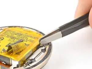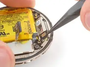 Используйте пинцет, чтобы снять крепление разъёма батареи.
