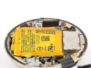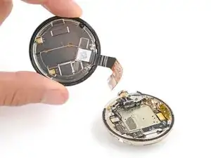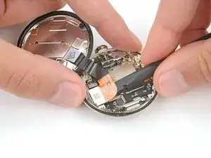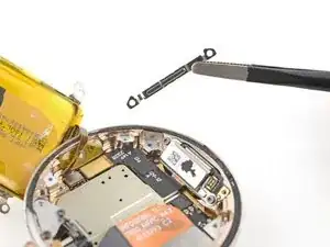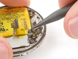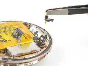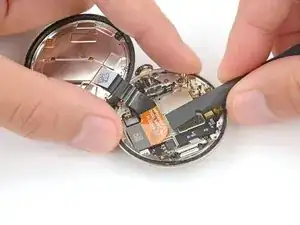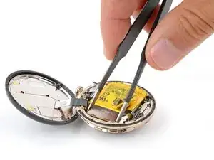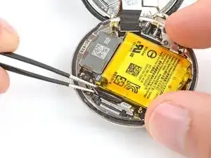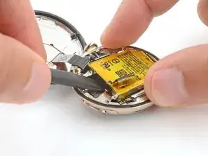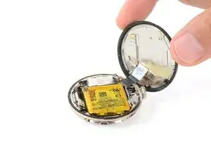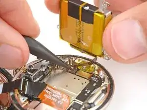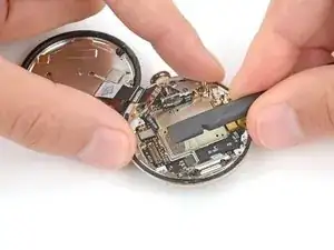 Не пытайтесь пока полностью вынуть батарею — она всё ещё подключена к часам тонким кабелем.