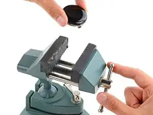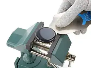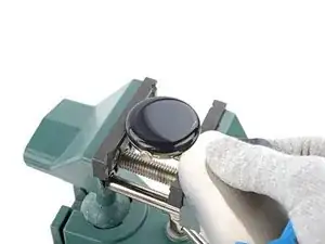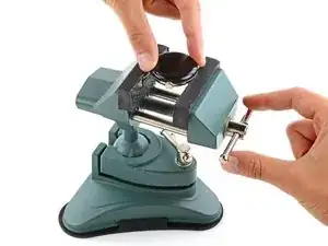 Зафиксируйте часы в небольших тисках так, чтобы губки вошли в пазы для ремешков на рамке.