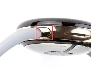 Держите iFlex под небольшим углом вверх и сдвигайте по часовой стрелке по периметру часов, чтобы разъединить клей. Остановитесь, когда дойдёте до боковой кнопки.