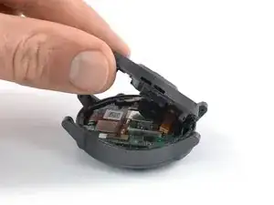 Осторожно приподнимите нижний край сборки задней крышки, чтобы убедиться, что она больше не приклеена к рамке часов.