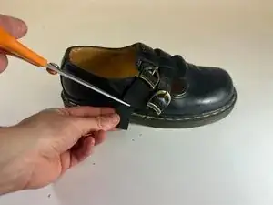 Если ремешок на ваших туфлях Dr. Martens Mary Janes не держится из‑за изношенной или порванной резинки, это руководство для Вас! В этом руководстве Вы замените эластичный ремешок на любимой паре Mary Janes. Перед началом убедитесь, что новая резинка имеет те же размеры, что и существующая на туфле. Шаг 10 требует базовых навыков шитья прямым швом — Шитьё прямого стежка, будьте осторожны при работе с швейной иглой.