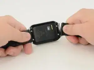 Нажмите на металлическую защелку, тяните ремешок от Gear, пока он не будет полностью снят.
