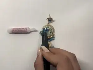 Используйте пинцет, чтобы осторожно взять камень и положить его на клей.