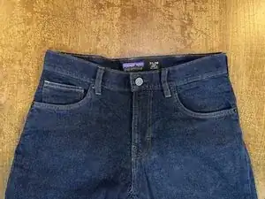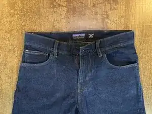 Положите джинсы лицевой стороной вверх на прочный стол или верстак.