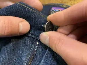Проверьте вашу новую кнопку, застегнув джинсы, чтобы убедиться, что новая кнопка установлена и надежно закреплена.