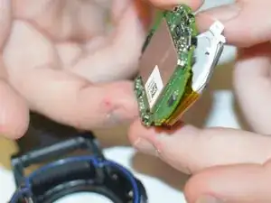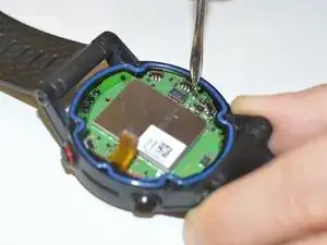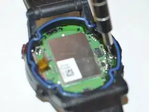Используйте отвёртку Torx T9, чтобы удалить один винт калибра 0,8 мм, который крепит основную плату к корпусу часов.