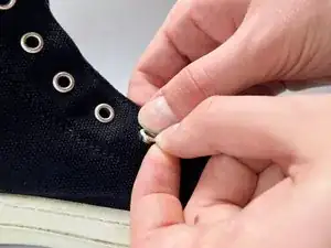 Проденьте шнурки снова, с новым металлическим люверсом на месте.