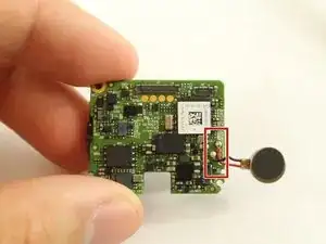 Переверните материнскую плату обратно лицевой стороной вверх, чтобы найти металлические контакты вибромотора, припаянные к плате.