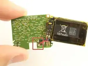 Поднимите и сдвиньте материнскую плату в сторону, чтобы открыть доступ к аккумулятору ёмкостью 167 мА·ч.
