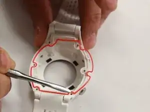 Удалите шесть винтов T5 Torx 6.32 мм, крепящих заднюю крышку к часам.