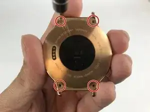 Найдите четыре винта T3 на задней крышке часов и используйте отвертку Torx T3, чтобы их выкрутить.