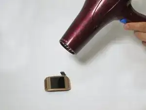 Используйте тепловую пушку, чтобы нагреть дисплей в течение 4-5 минут, при этом перемещая пушку, чтобы равномерно распределить тепло. Это нагревает клей, что облегчает удаление материнской платы.