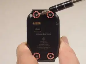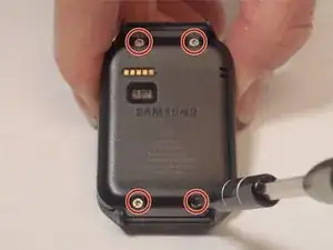 Используйте отвертку Torx T5, чтобы удалить 4 винта (0,4 мм), расположенные на задней панели часов.