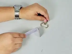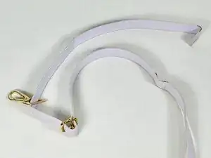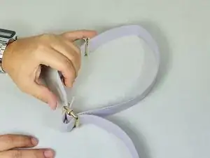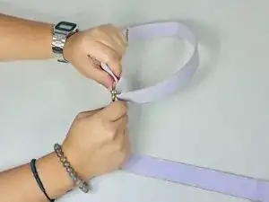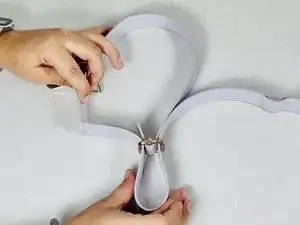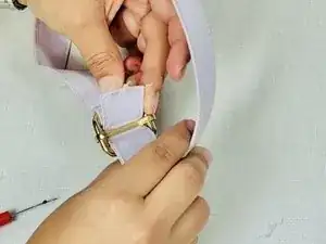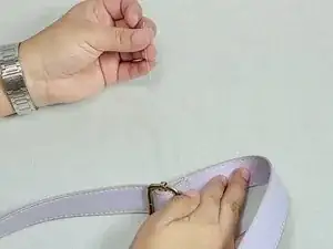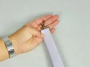 Найдите нить на ремне, удерживающую металлическую застёжку.