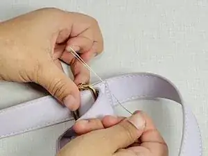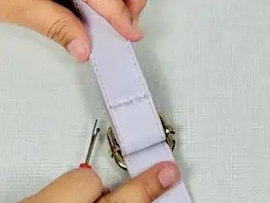 Зашейте ремень иглой и ниткой, следуя отверстиям от оригинального шва.