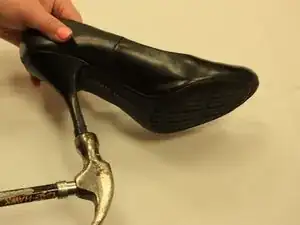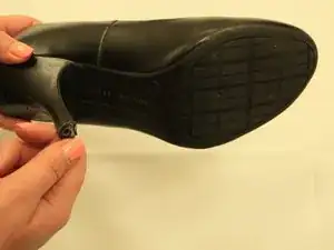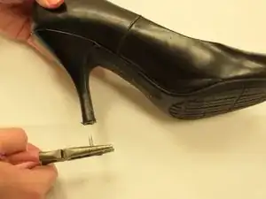 Вставьте штифтовый конец новой набойки в отверстие каблука.