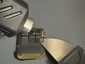 Используйте тепловую пушку, чтобы нагреть чип — он приклеен на клей.